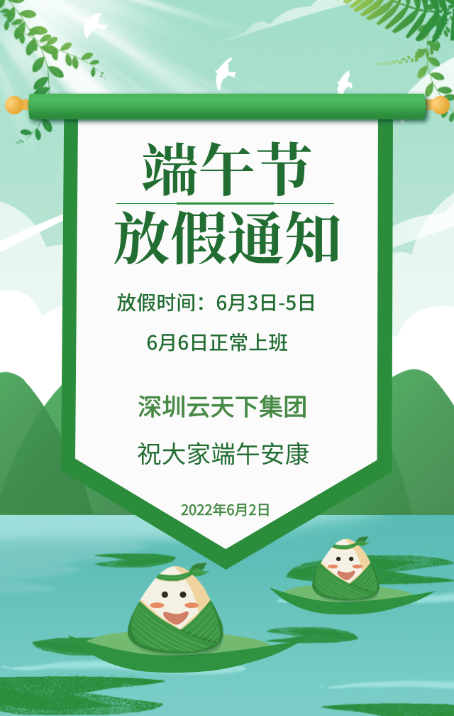 粽葉飄香五月五,端午節(jié)到了,深圳云天下集團(tuán),祝愿云天下的所有客戶和員工們端午節(jié)安康,祝你“粽”是一帆風(fēng)順,幸福相伴。